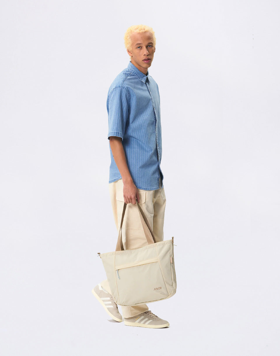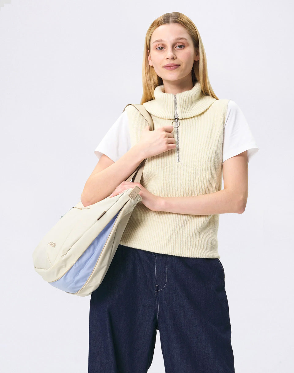 Aevor Bike Shopper - shoulder bag with expandable volume and hidden strap for comfortable carrying even when cycling.