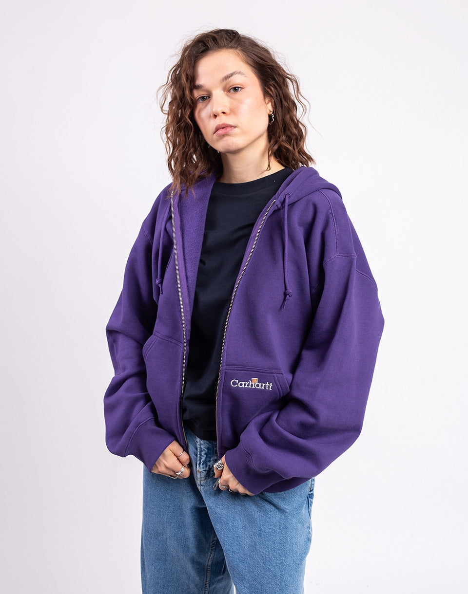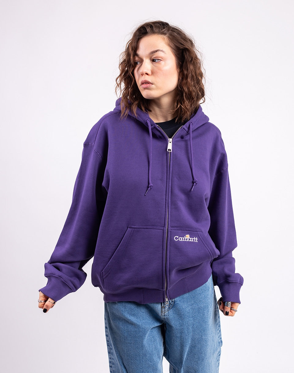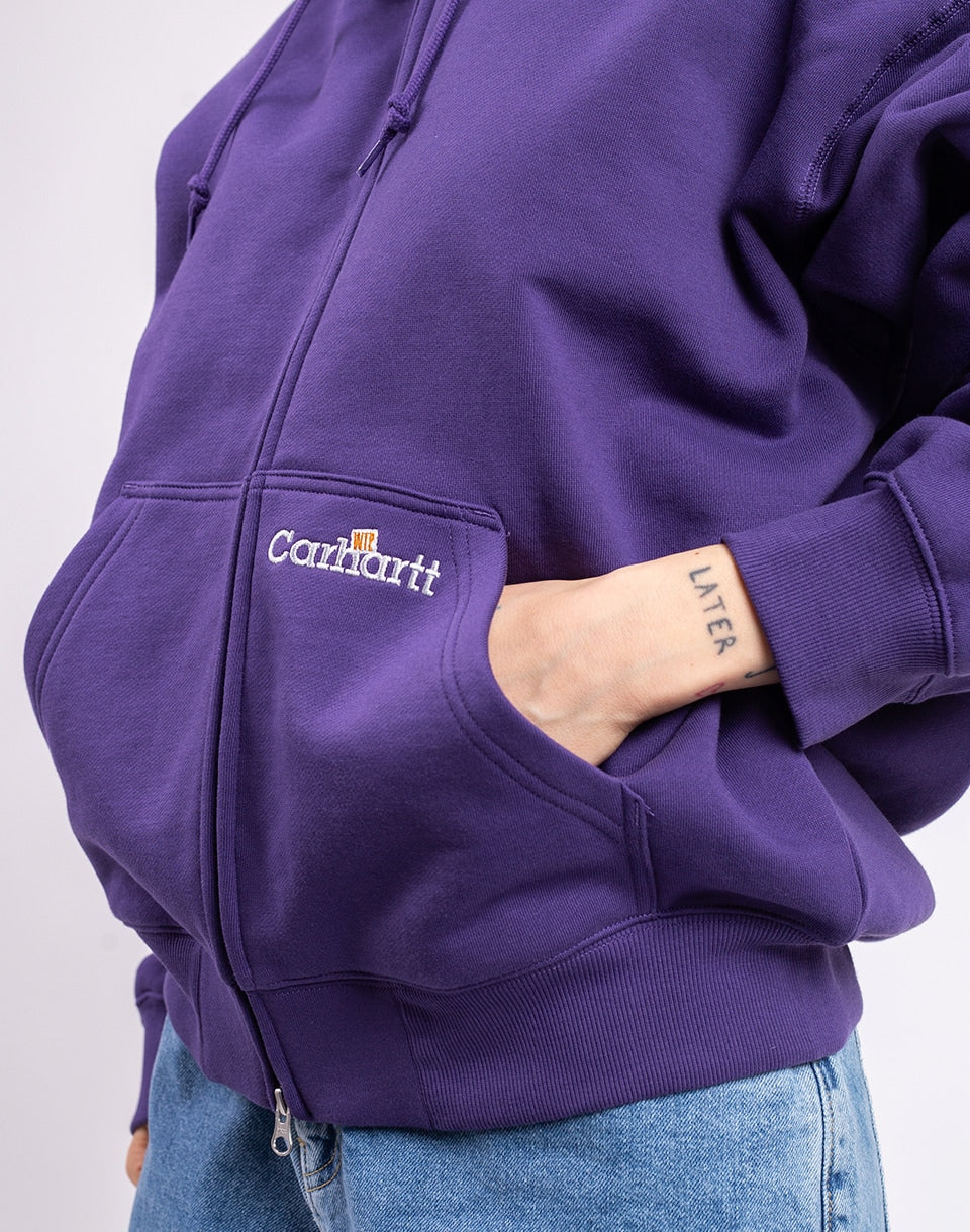 Carhartt WIP Hooded WIP Label Sweat Jacket - a heavyweight zip-up sweatshirt that stands on quality material and a clean logo. You'll wear this one for years.