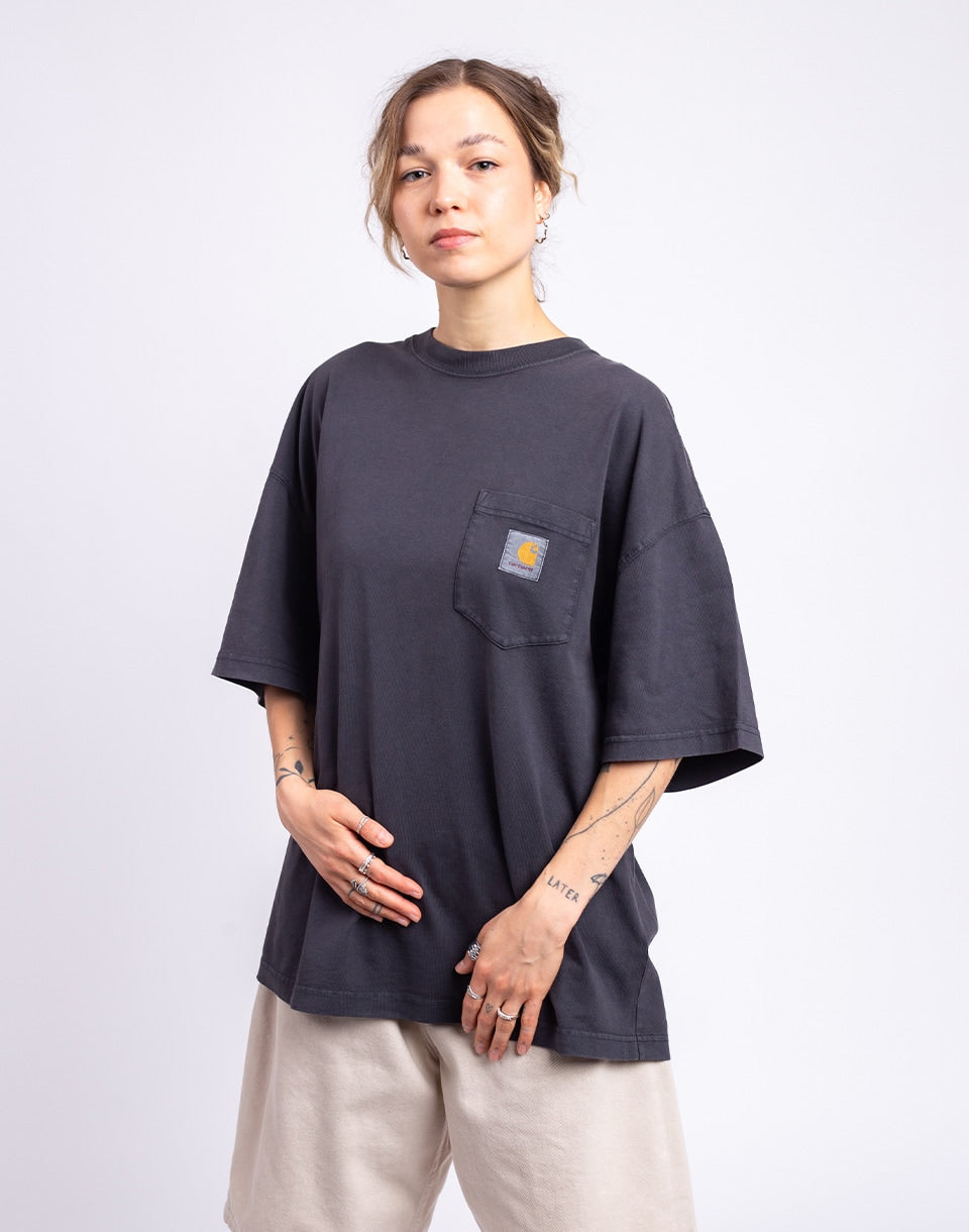 Carhartt WIP S/S Hudson Pocket T-Shirt - A looser-fitting T-shirt in a sturdy, heavier cotton with sun-fade-like dye and a chest pocket with a woven brand label.