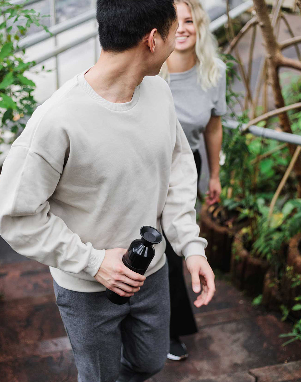 The Dopper brand uses recyclable, non-toxic and durable materials such as steel and polypropylene. EFSA regulations do not allow the use of material made from final consumer waste, as the bottles are intended to come into contact with food.