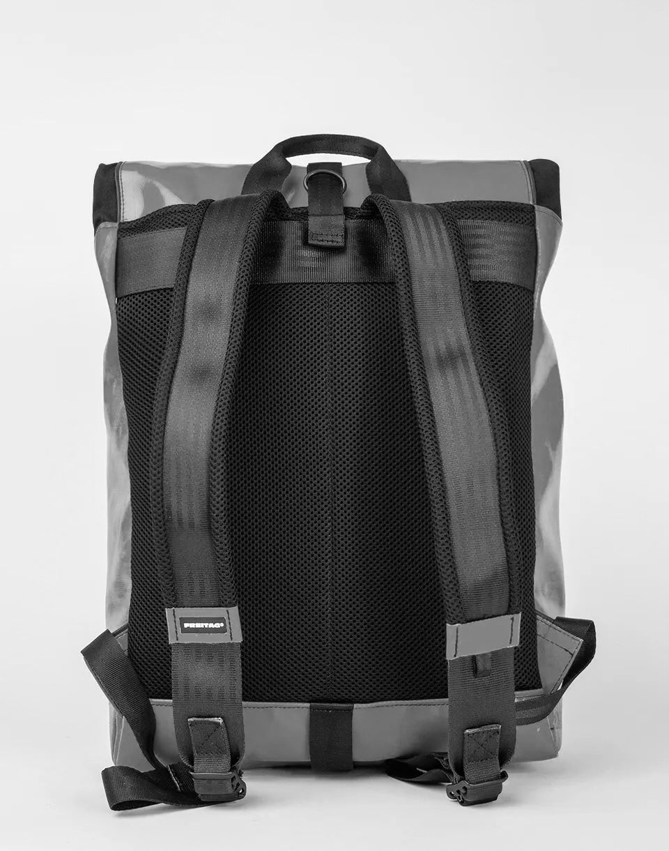 FREITAG F155 Clapton - a unique handmade rolltop backpack made from used truck tarps, seat belts and recycled PET bottles.