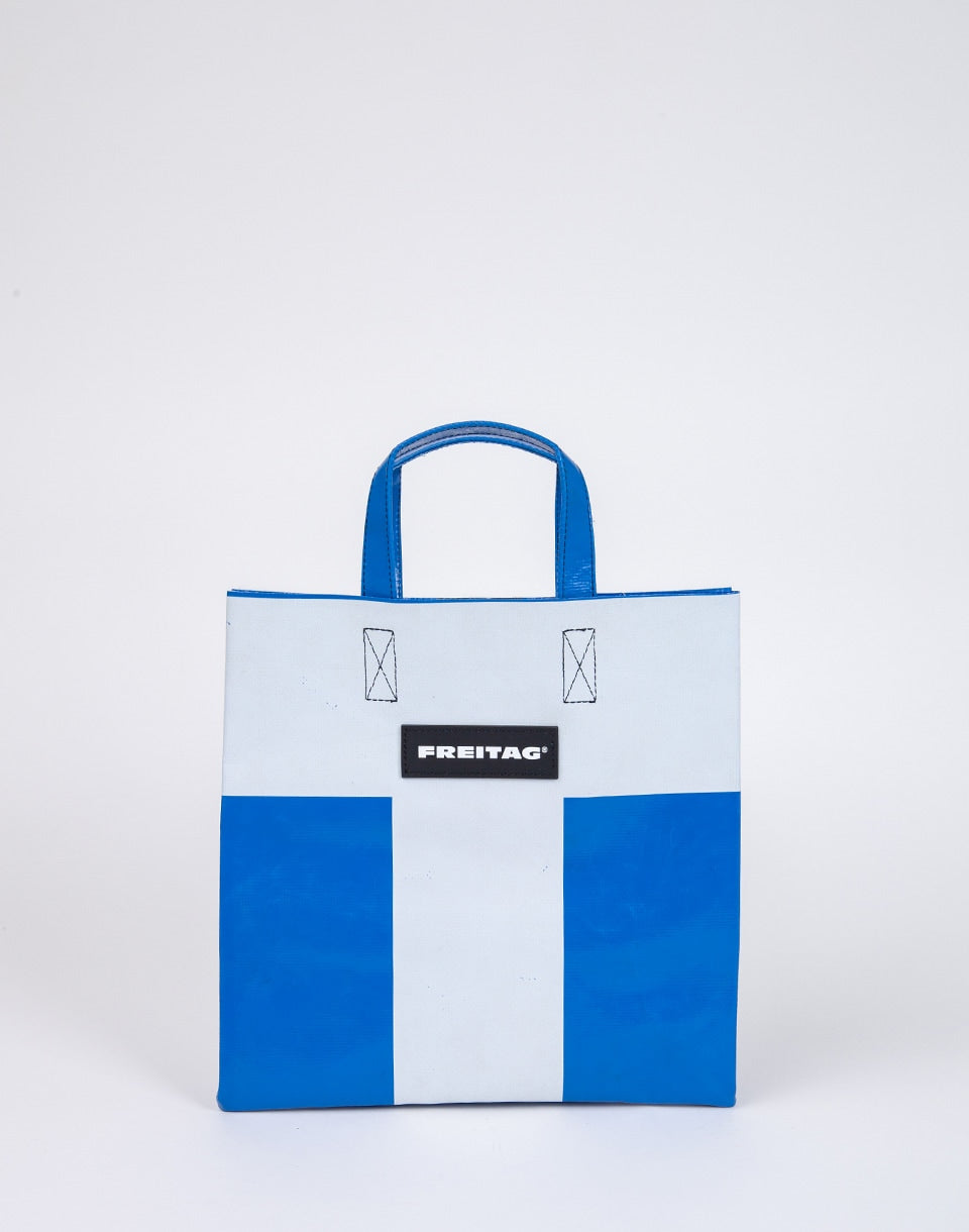 FREITAG F250 Sonny - the original shopping bag made from recycled truck sails, which takes the shape of a classic paper bag, folds comfortably into a backpack and can carry even a large purchase.