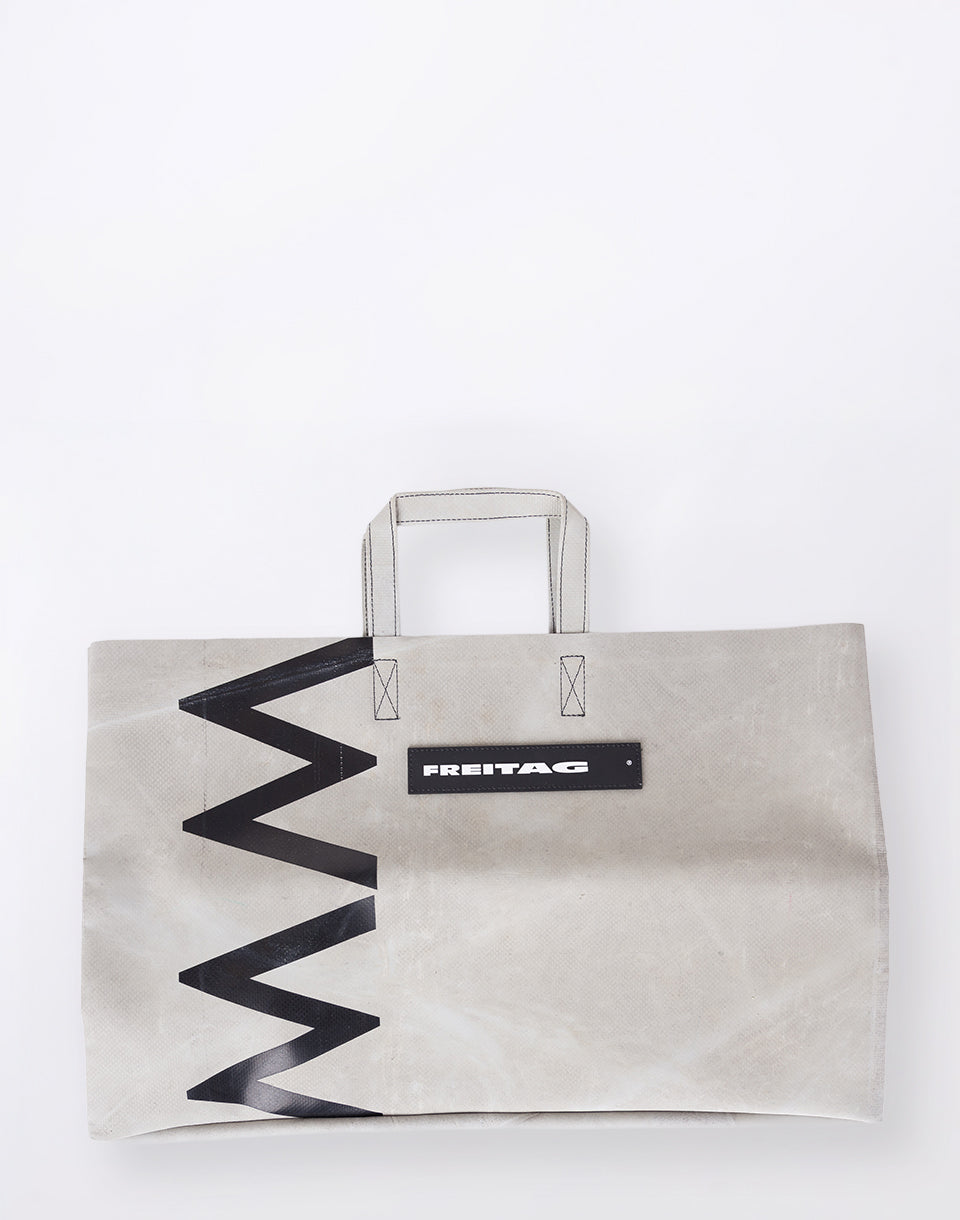 FREITAG F260 Miami Wide - a unique shopping bag made of recycled truck sails, which is based on the look of classic paper bags, but its width makes it unmistakable.