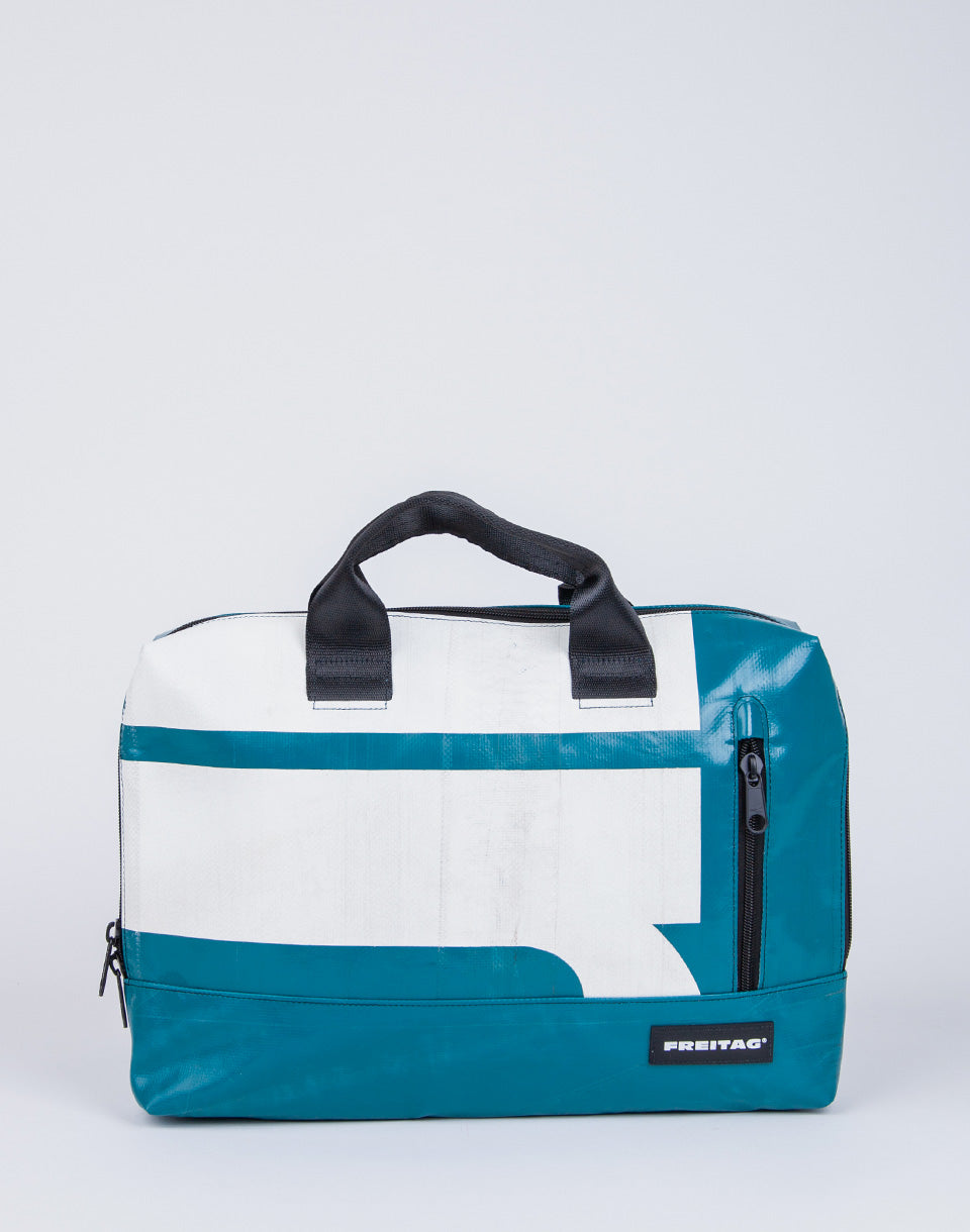 FREITAG F304 Moss - a unique Swiss laptop bag made from used truck tarps, seat belts and bicycle tubes.