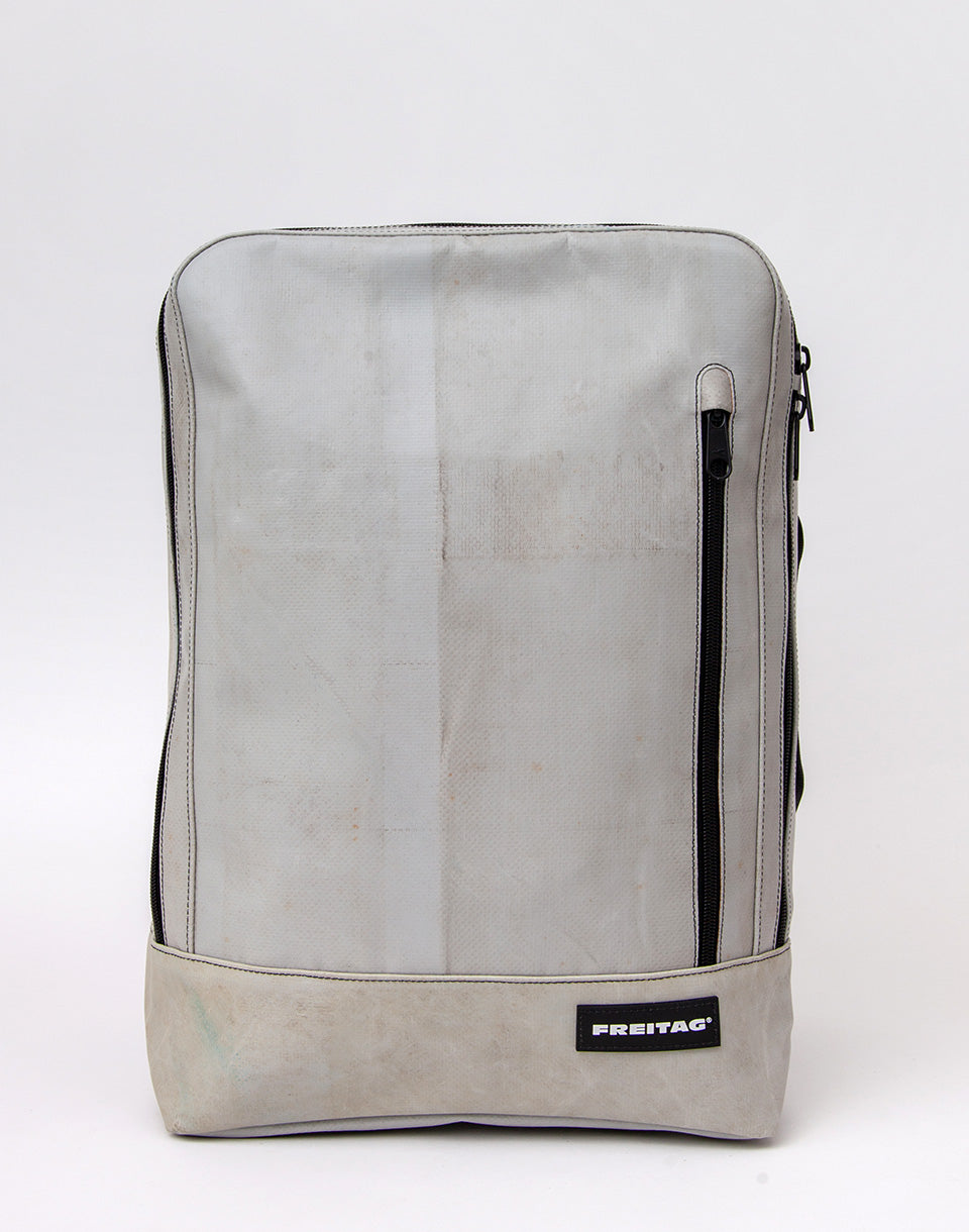FREITAG F306 Hazzard - hand-cut and sewn Swiss backpack made from used truck tarps and seat belts.
