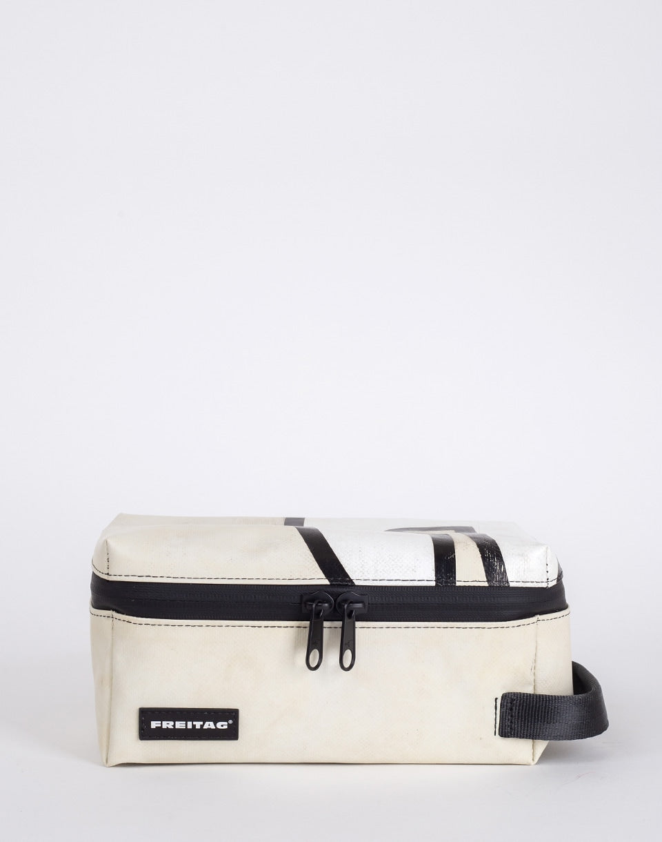FREITAG F36 Wayne - medium-sized cosmetic bag made from used truck tarps and upcycled seat belts. Thanks to practical compartments, it will be an ideal travel partner.