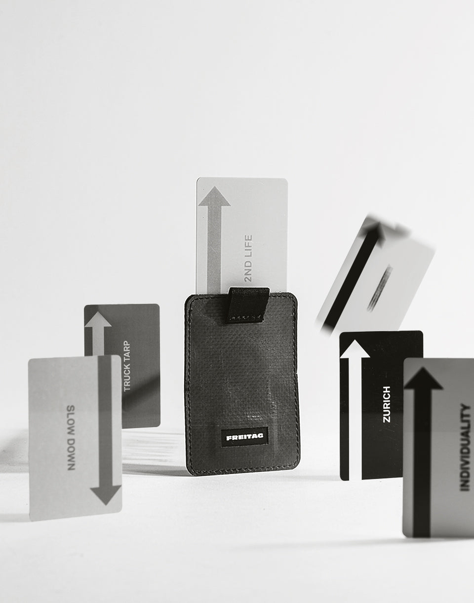 FREITAG F380 Justin - original card holder for FREITAG F385 Circ-Case made from used truck tarps. The card holder will also be compatible with FREITAG next generation iPhone cases.
