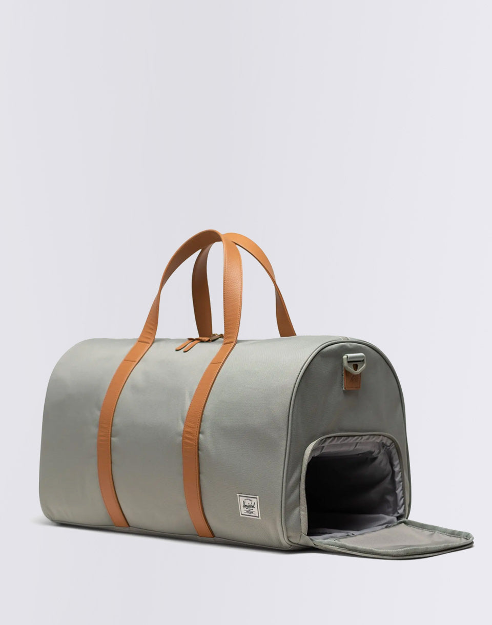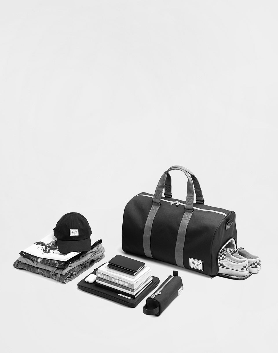 Herschel Supply Novel - a spacious and practical duffel for weekend trips, offering a side shoe compartment, removable padded shoulder strap and a two-way waterproof zipper. All in an ageless, clean design.