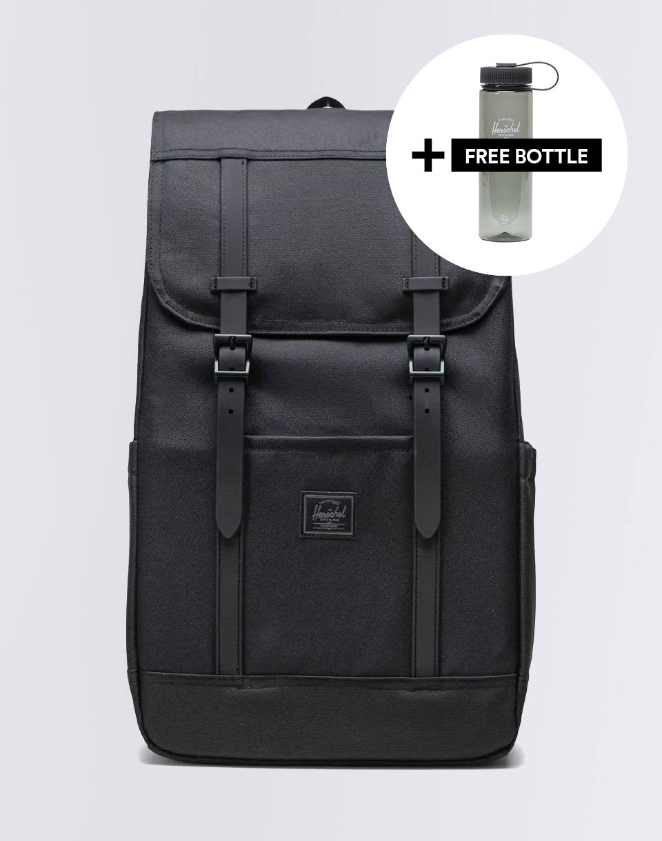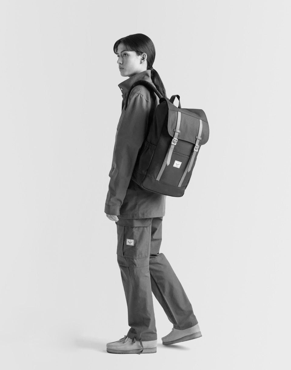 The Herschel Supply Retreat - a small urban backpack made from EcoSystem™ recycled material from 100% recycled PET bottles that offers a padded fleece sleeve for a 15"/16" laptop in addition to a clean design.
