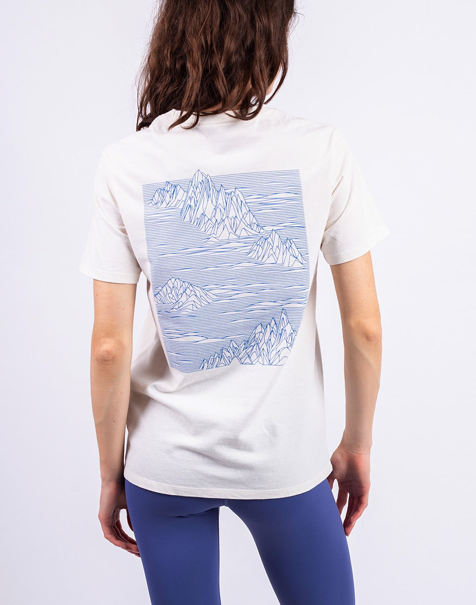 Patagonia Strataspire Responsibili-Tee - classic t-shirt made from recycled materials with a large graphic print on the back.