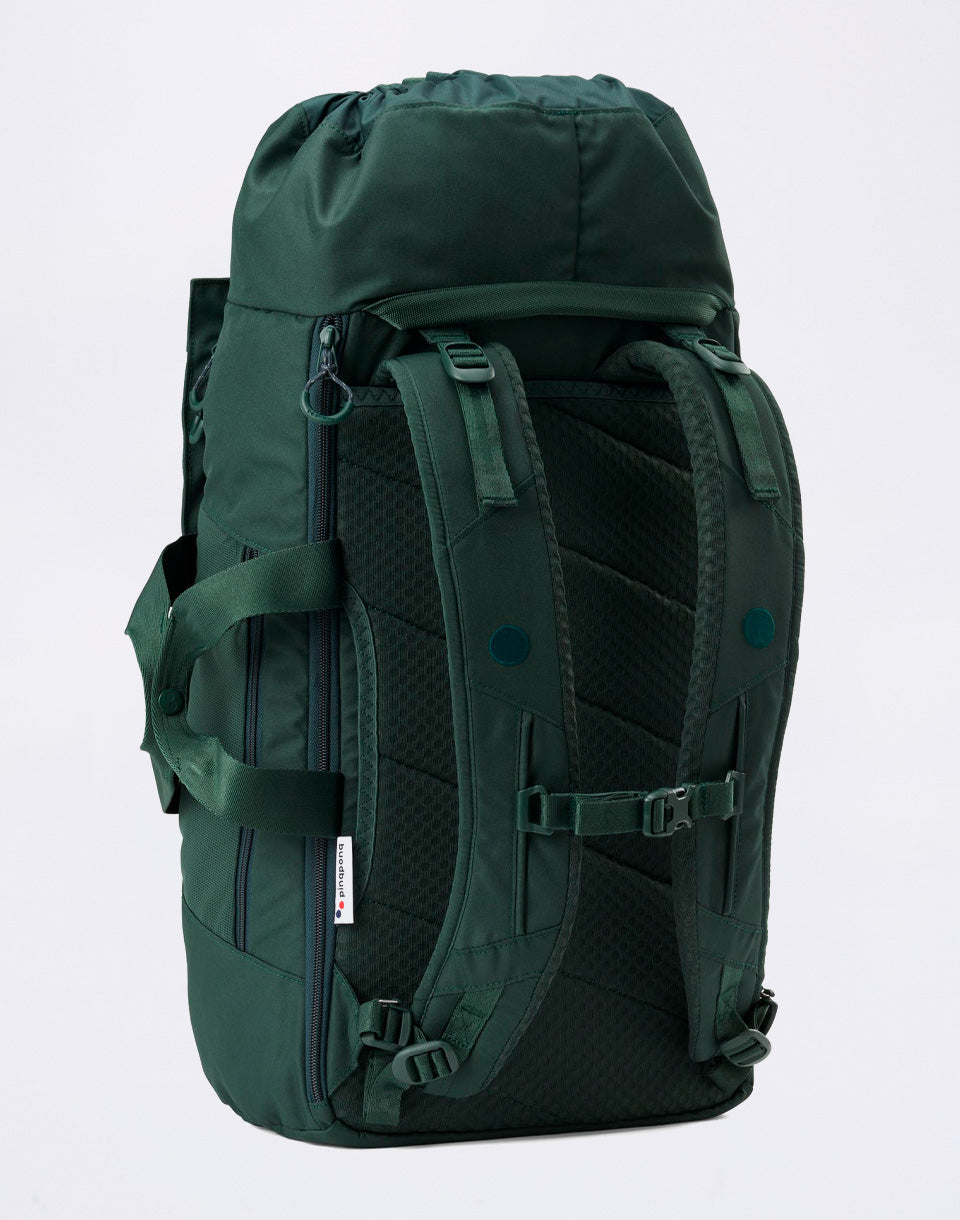 pinqponq Blok Large - exclusive vegan luggage made from recycled PET bottles that can be worn as a crossbody, a classic backpack or as a larger hand bag. It also delights with its variable volume (40-45 litres), padded 17" laptop and tablet compartment, three opening options and PETA, Fair Wear and Bluesign® certifications.