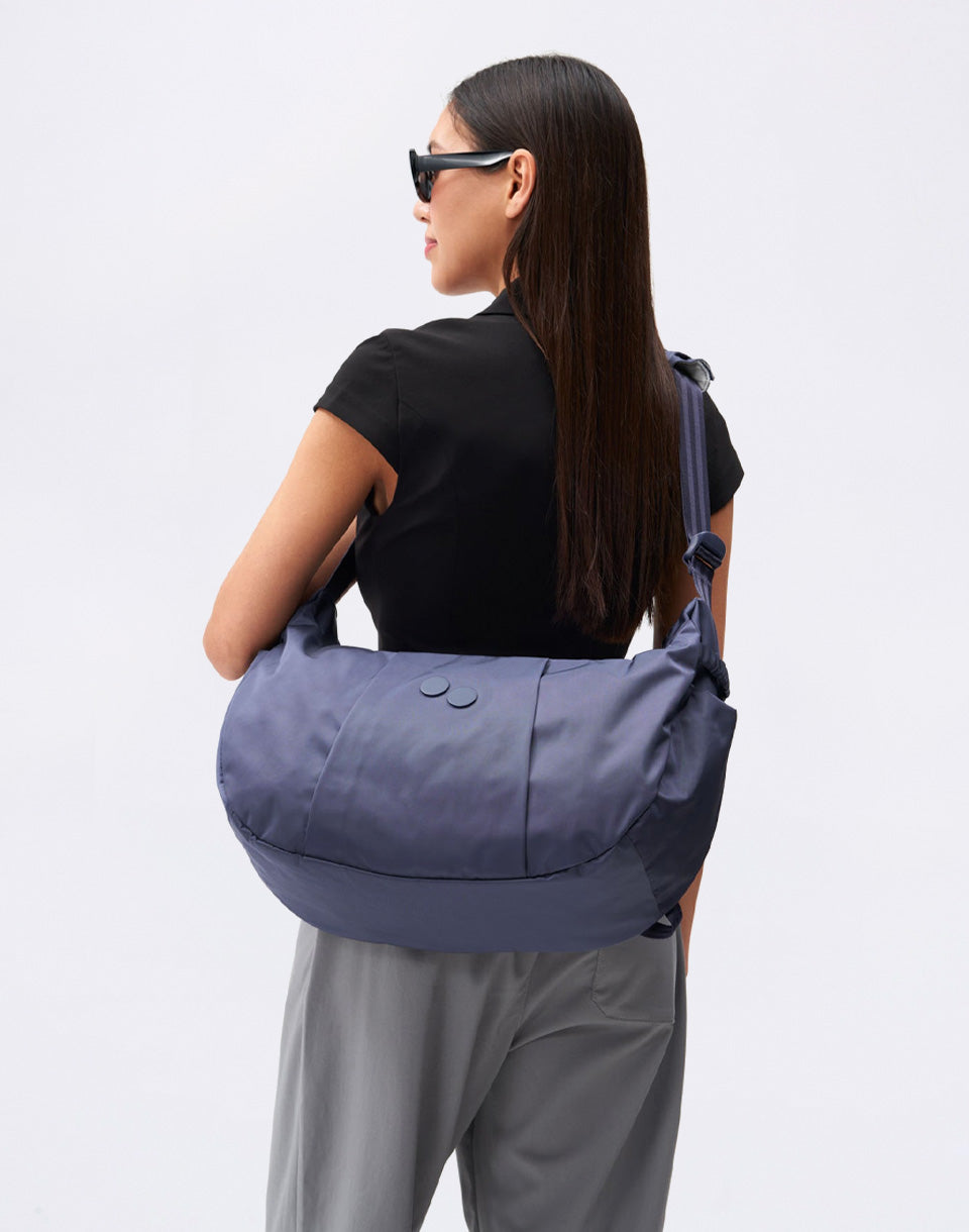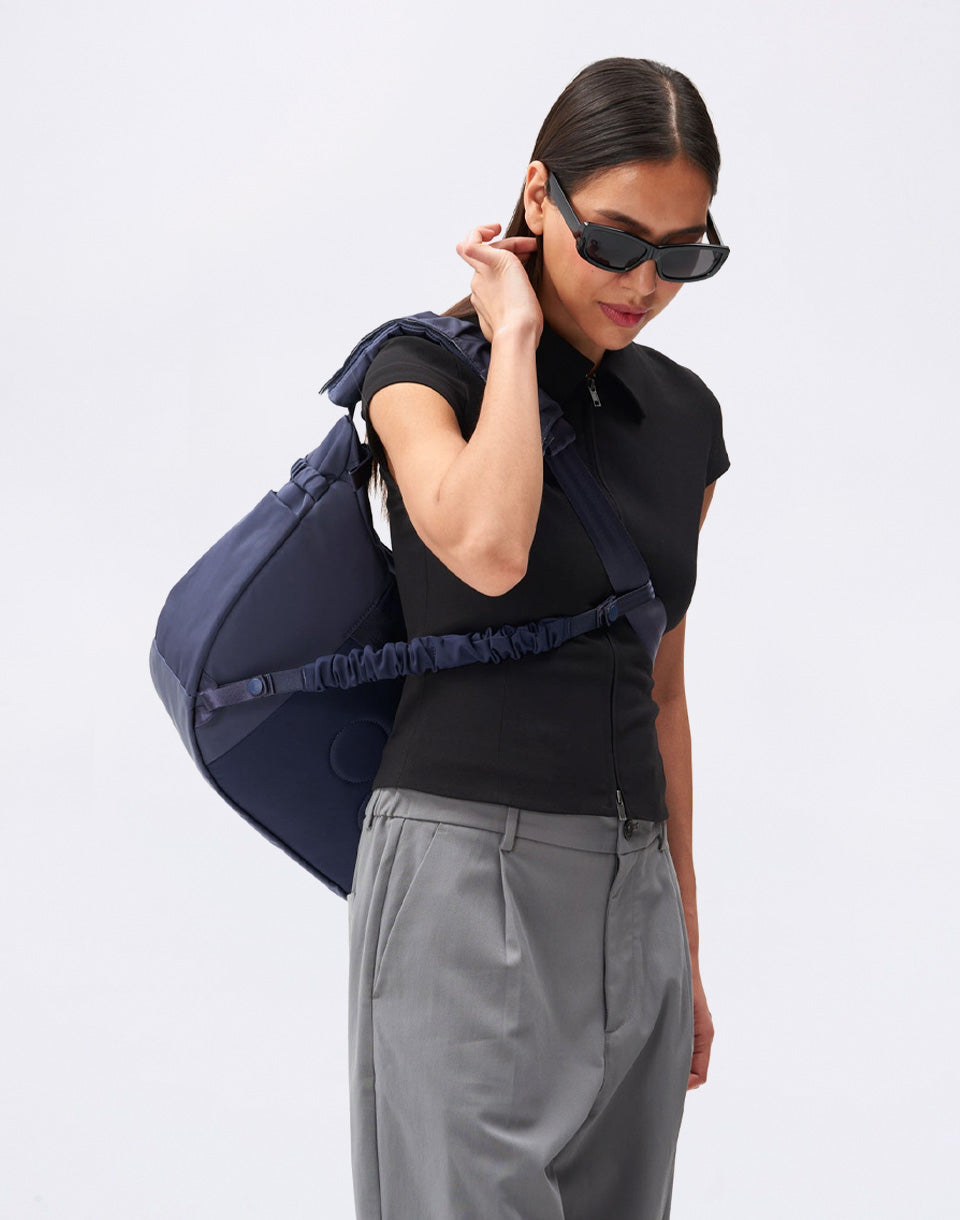 pinqponq Krumm Large - everything you need from a backpack, in an elegant handbag design. A practical piece that holds your laptop, drinks and other essentials, and thanks to the three-point system, it will stay exactly where it's supposed to when cycling.
