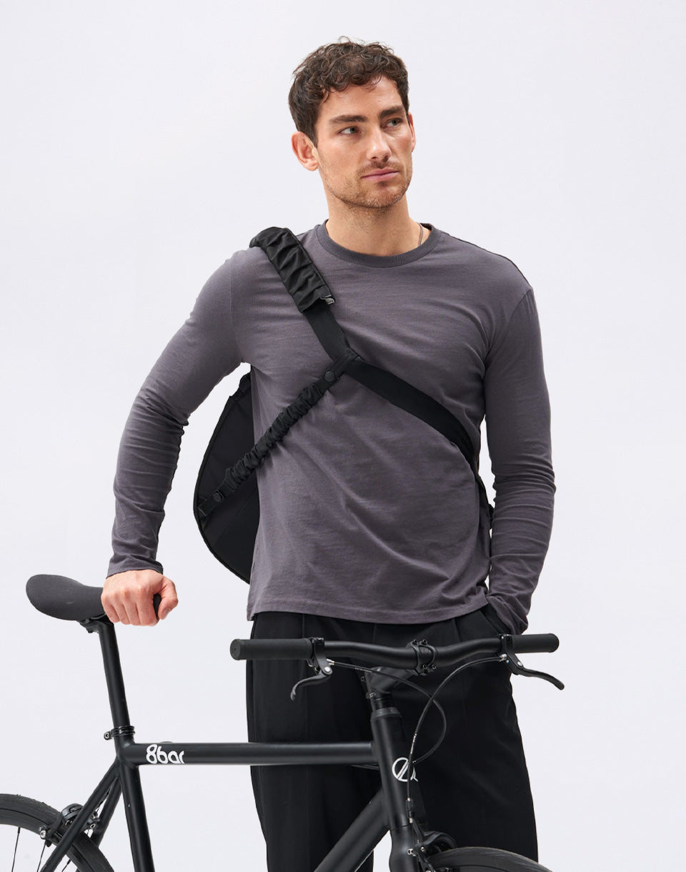 pinqponq Krumm Large - everything you need from a backpack, in an elegant handbag design. A practical piece that holds your laptop, drinks and other essentials, and thanks to the three-point system, it will stay exactly where it's supposed to when cycling.