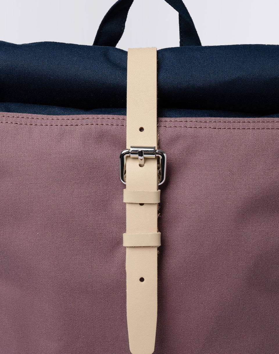 • Rolltop fastening with leather strap and metal buckle