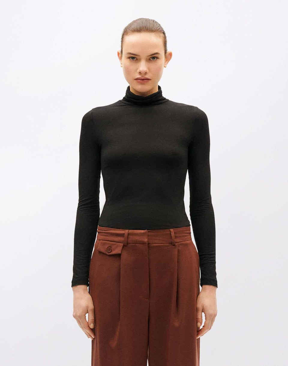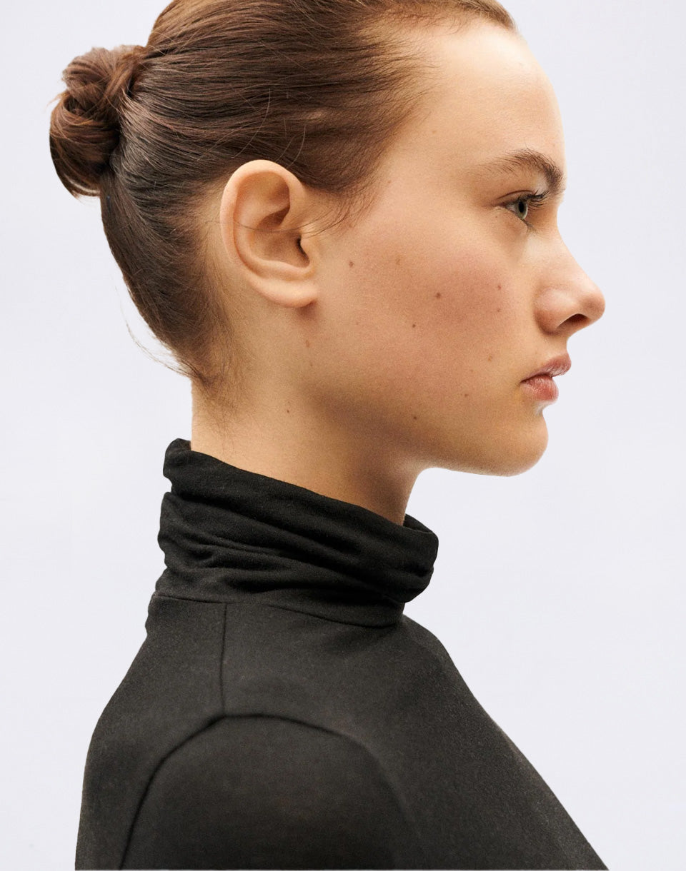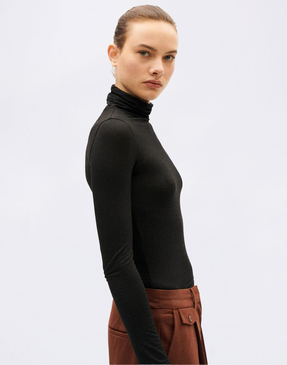 Thinking MU Black Noe Cachemire Top - women's long-sleeved, fitted turtleneck in a lyocell and cashmere blend.